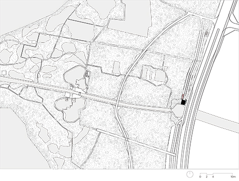 The pavilion uses slender steel columns and a fragmented roof to create an artificial “forest” between the busy roadway and the expanse of waterborne woodland. A modern steel-structured pavilion is reinterpreted as a place offering an experience somewhere between “within the woods” and “beneath a primitive hut”—a threshold condition between the atmospheres of “nature” and “manmade.” The dense 40 mm-diameter steel columns support a seemingly irregular roof, yet together they still form what can be called a ting, a pavilion. Within the pavilion, among the staggered thin columns, two paths leading toward the deeper area of Dianchi Lake subtly unfold; people gather or disperse from here. The roof allows fragmented light to enter, creating the sense of standing within deep shade, while glimpses of the sky and nearby treetops appear through the gaps. From afar, however, the pavilion presents an image reminiscent of the four-sloped hipped roofs of traditional Chinese architecture. Yet, because the roof has been fragmented, it also takes on a thatched-roof-like appearance. In this way, the actual material—steel plate—becomes dematerialized, or rather, its original industrial connotations are displaced. This allows us to reconsider the relationship between technology and nature, as well as reexamine the relationship between the traditional Chinese ting and its natural landscape setting.